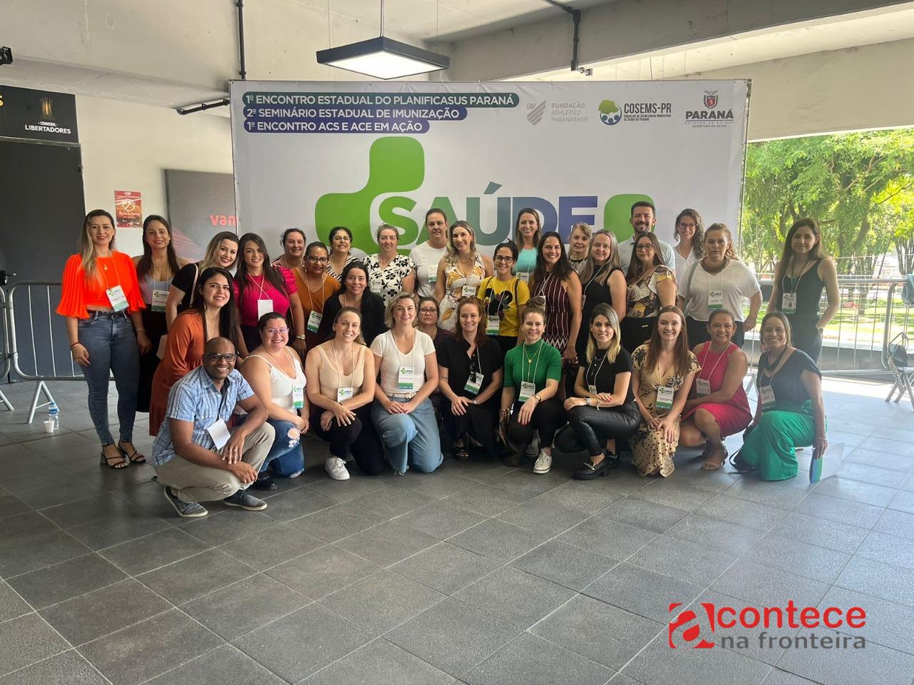 A secretária da saúde de Foz do Iguaçu, Jaqueline Tontini, e parte da equipe técnica da pasta participaram nesta semana do evento Saúde em Campo, na Arena da Baixada, em Curitiba.