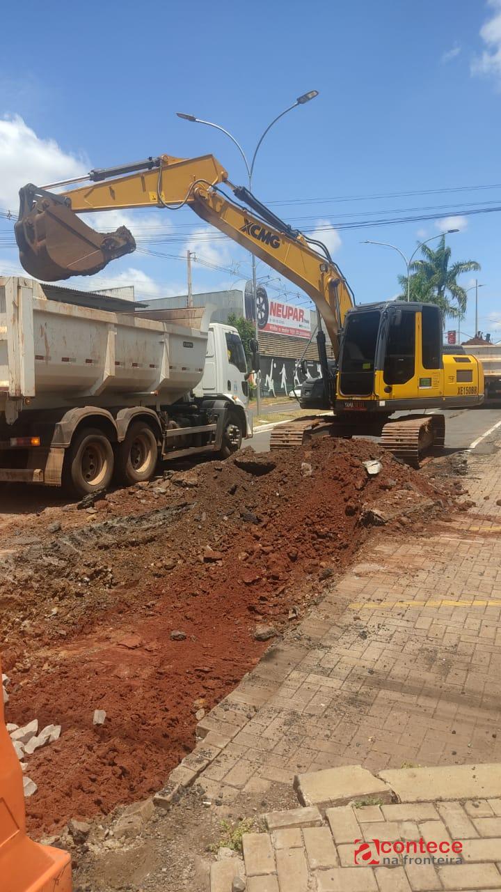 A Secretaria Municipal de Obras iniciou nesta segunda-feira (12) um trabalho de recuperação do pavimento na Avenida das Cataratas com a Rua Major Acylino de Castro, na Vila Yolanda.