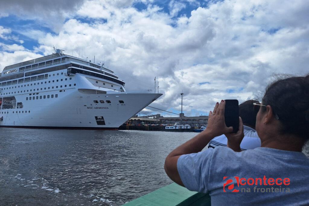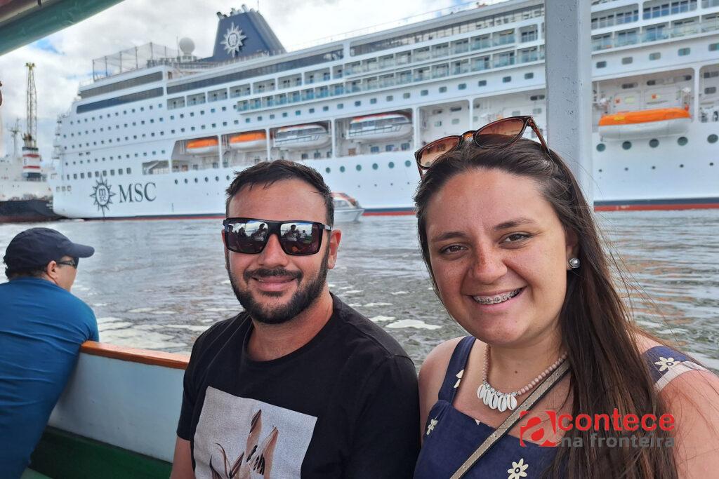 A quinta escala do navio de cruzeiro MSC Armonia em Paranaguá, no Litoral do Estado, aconteceu nesta sexta-feira (10) e foi marcada novamente por turistas estrangeiros e de outras partes do Brasil conhecendo o receptivo do Estado, os atrativos da região e comprando pacotes de agências locais. Além da Ilha do Mel, um trajeto feito de barco pela Baía de Paranaguá – com direito a observação de golfinhos – tem se tornado um dos passeios favoritos dos turistas.