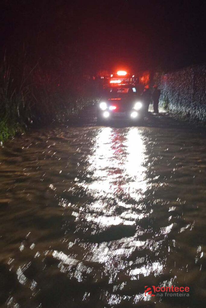 JOVENS ILHADOS – Em uma das ocorrências, 13 estudantes que voltavam para casa após o turno da noite estavam em um micro-ônibus que ficou ilhado no bairro Cubatão, em Guaratuba. O veículo não pôde prosseguir quando a água invadiu a pista.