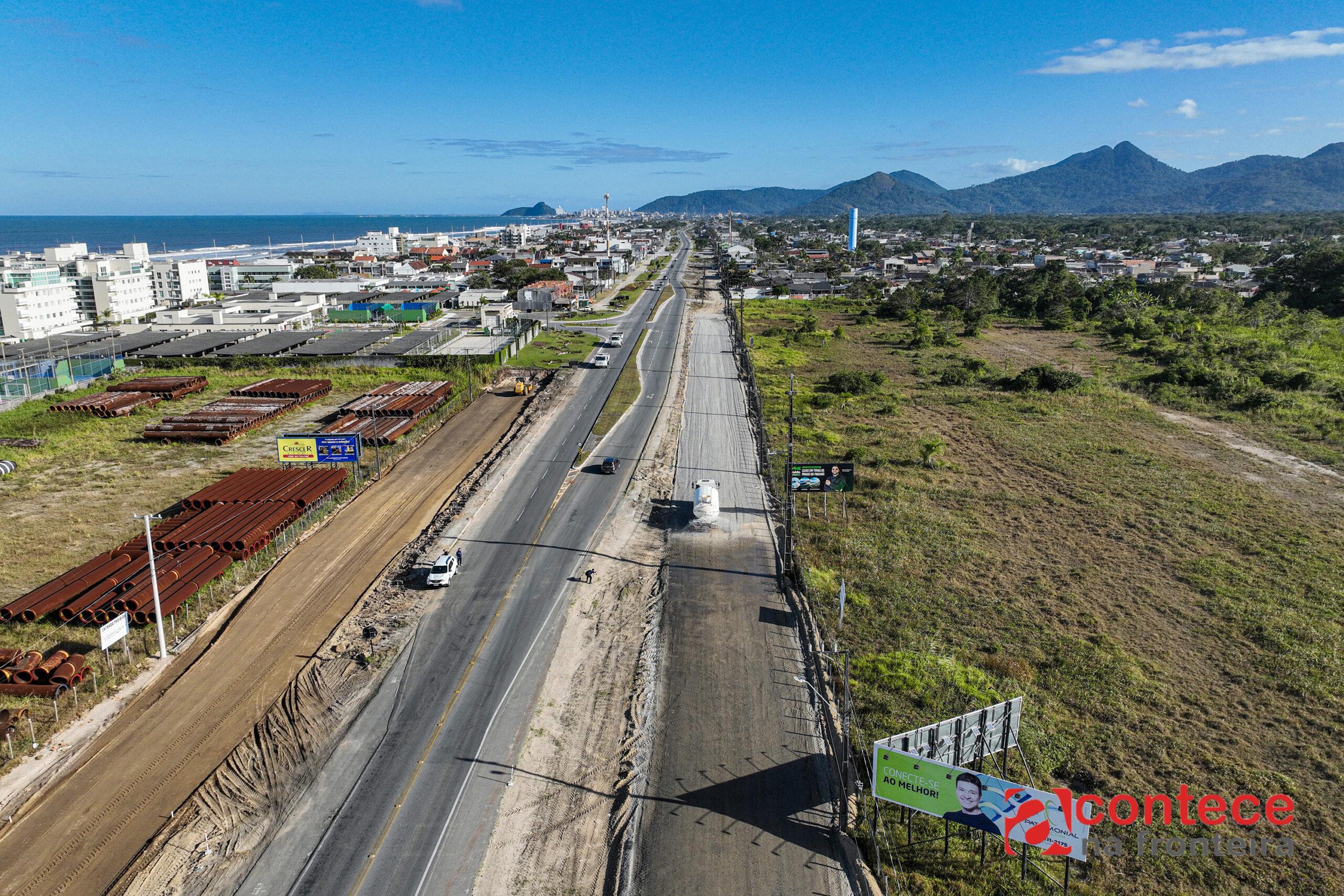 Também conhecida como Rodovia Máximo Jamur, a estrada de 14,28 quilômetros terá duplicação em concreto, fruto do investimento de R$ 274 milhões para melhorar a principal ligação entre as duas cidades litorâneas.