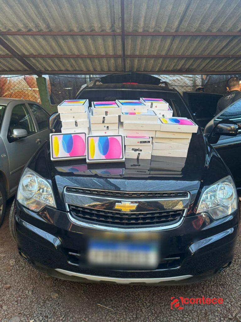 Uma apreensão aconteceu na manhã desta terça-feira (14/10), em uma ação conjunta que contava com servidores da Receita Federal, Polícia Federal e BPFron. Durante fiscalização de rotina que ocorreu em dois estacionamentos localizados na Vila Portes, bairro próximo à Ponte Internacional da Amizade, foram encontrados cerca de 100 tablets escondidos no interior de um veículo que estava em um dos estacionamentos.