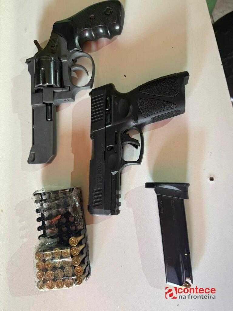 Durante a mesma ação, foram identificadas duas pessoas com posse ilegal de armas de fogo. Eram dois homens, um deles era o dono de um dos estacionamentos, ele portava um revólver calibre 38, o outro era um cliente do local e portava uma pistola calibre 9mm. Após serem detidos, os indivíduos foram presos e encaminhados para à Delegacia da Polícia Federal.
