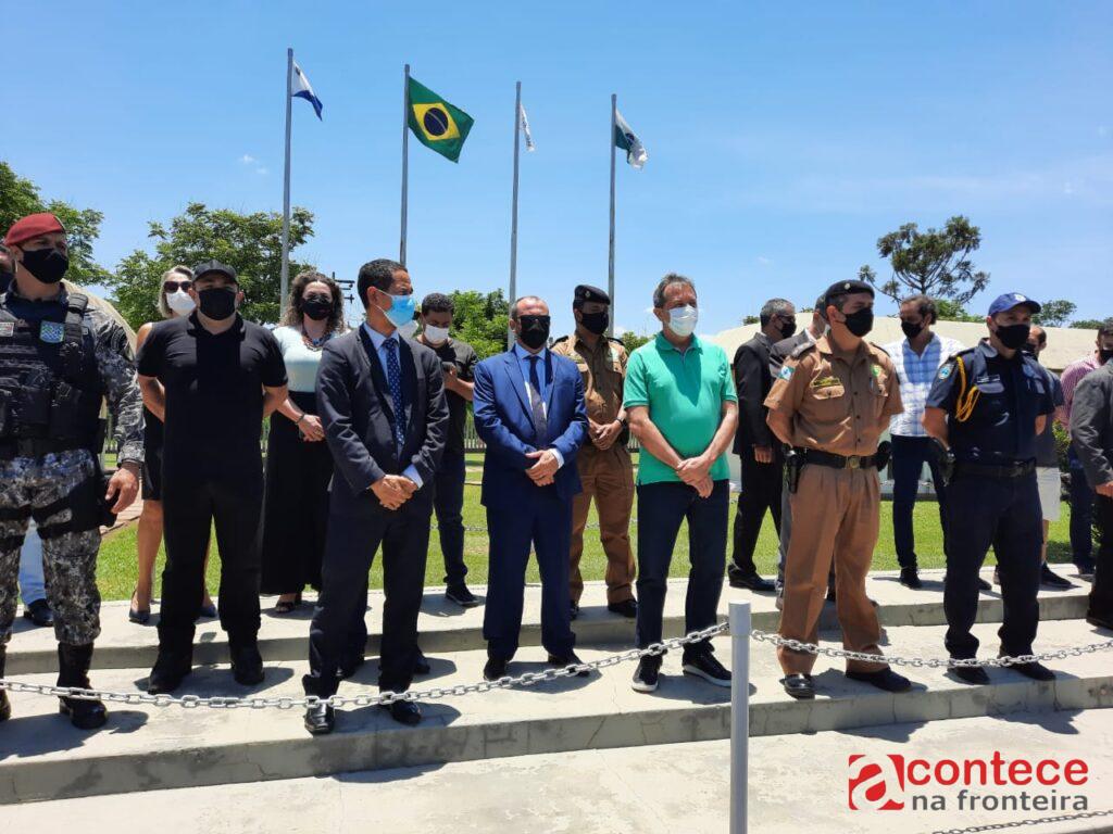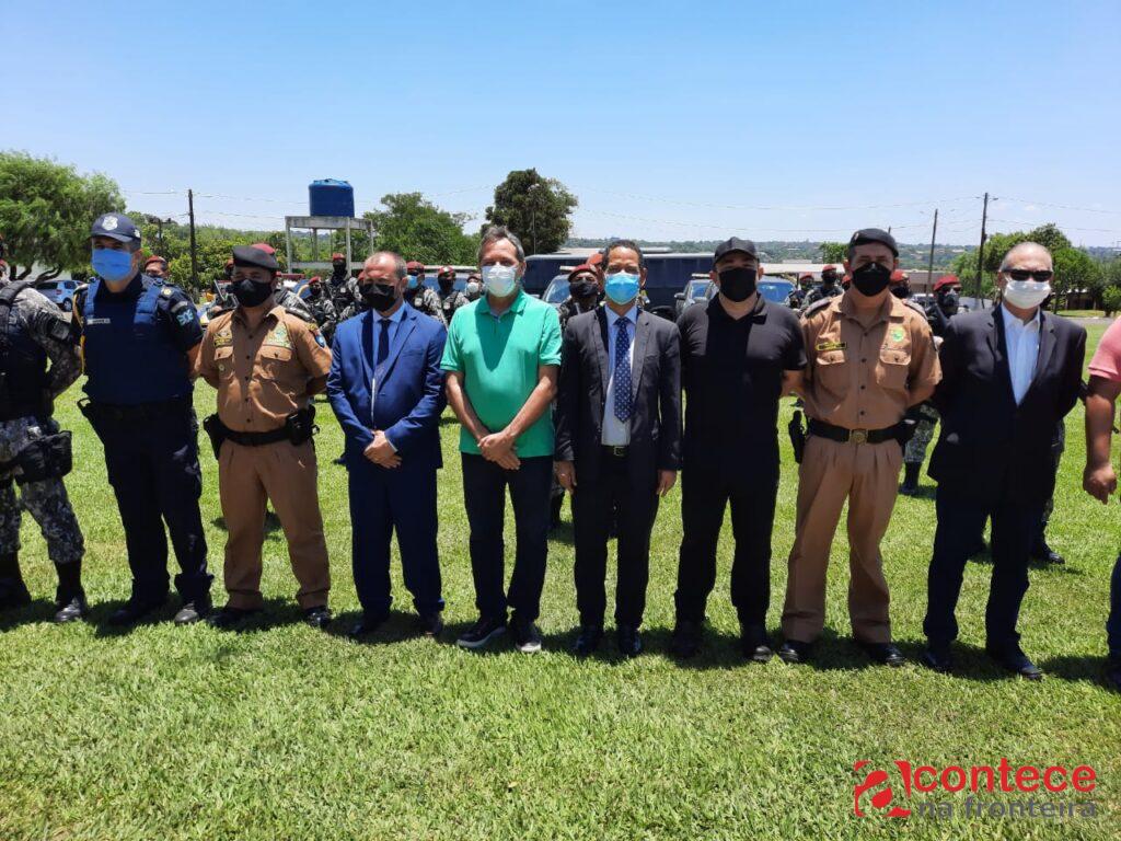 Neste sábado (04), o prefeito de Foz do Iguaçu, Chico Brasileiro, e o secretário de Segurança Pública do Paraná, coronel Rômulo Marinho, recepcionaram no 14º Batalhão da Polícia Militar as tropas da Força Nacional de Segurança que reforçarão o policiamento na cidade até março de 2022.