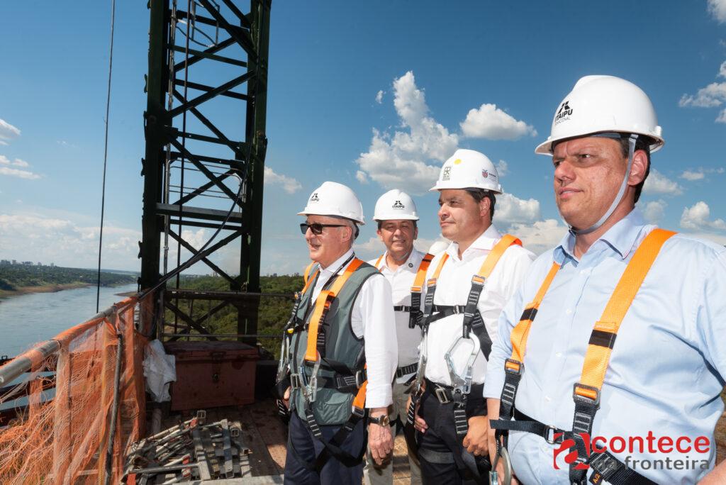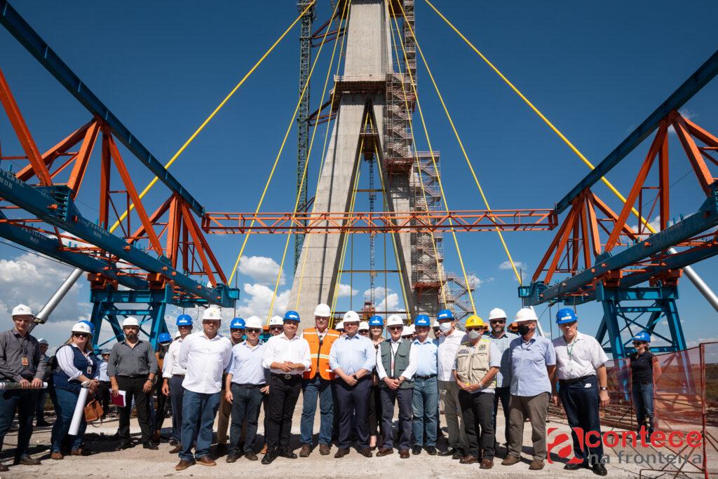 Durante a visita, Freitas e parte da comitiva subiram de elevador a uma plataforma do mastro principal na margem brasileiro, a aproximadamente 150 metros de altura. Da base ao topo, a torre (em formato de “Y” invertido) soma 190 metros, equivalente a um prédio de 63 andares. “Do alto pudemos contemplar a grandiosidade dessa obra que vai unir cada vez mais Brasil e Paraguai”, afirmou o general Ferreira.