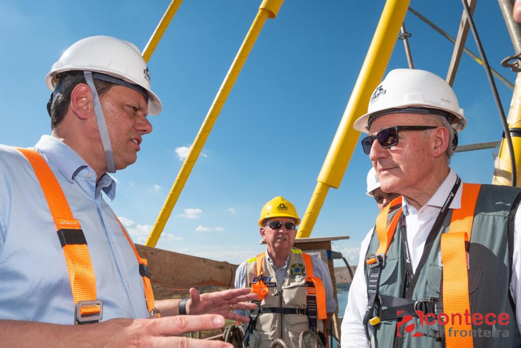 Tarcísio Gomes de Freitas visitou o canteiro de obras nesta sexta-feira (17), elogiou o andamento dos trabalhos e destacou a importância das parcerias entre o governo federal e a Itaipu Binacional.