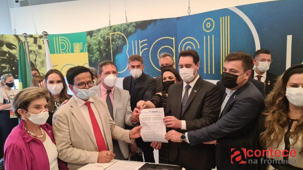 O prefeito Chico Brasileiro assinou neste domingo (10), ao lado do governador Ratinho Junior, um decreto que confirma a adesão de Foz do Iguaçu às campanhas Race to Zero e Race to Resilience da Organização das Nações Unidas (ONU) para o desenvolvimento sustentável. O ato ocorreu durante a abertura da Semana do Paraná, evento realizado no Pavilhão Brasil da Expo Dubai 2020.
