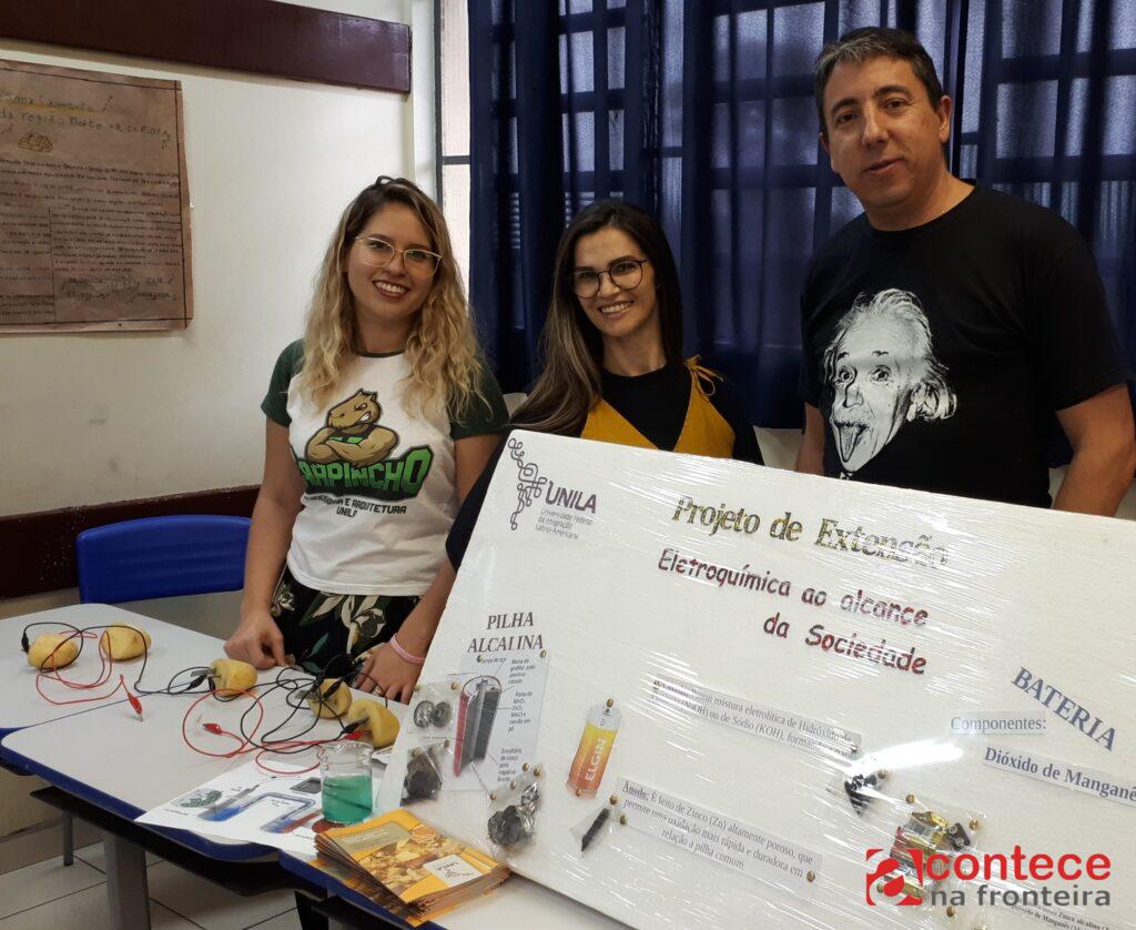 Outra linha em que tem atuado é com os projetos integrados de ensino, pesquisa e extensão intitulados “Estudo de casos de pilhas e baterias”. Alguns estudantes da rede pública de Foz do Iguaçu possivelmente já tiveram contato com esse experimento, em visitas realizadas nas escolas ou no acesso desses estudantes em eventos na Universidade. O experimento consiste na atividade prática de eletroquímica utilizando pilhas da batata e do limão. Os resultados também já foram apresentados em eventos nacionais e internacionais, com publicações em revistas científicas. Além disso, três integrantes da equipe já receberam menção honrosa pelo destaque das atividades realizadas.