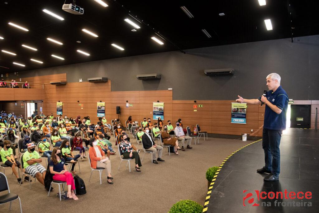 O projeto “Maestro da Bola”, mantido pela Itaipu Binacional em parceria com a Associação Maestro Esporte Clube, vai ampliar o atendimento de 60 para 300 crianças, em Foz do Iguaçu. O anúncio foi feito pelo ex-jogador da Seleção Brasileira e patrono do projeto, Ricardinho Pozzi, em uma solenidade na manhã desta terça-feira (19), no Cineteatro dos Barrageiros, na usina hidrelétrica.