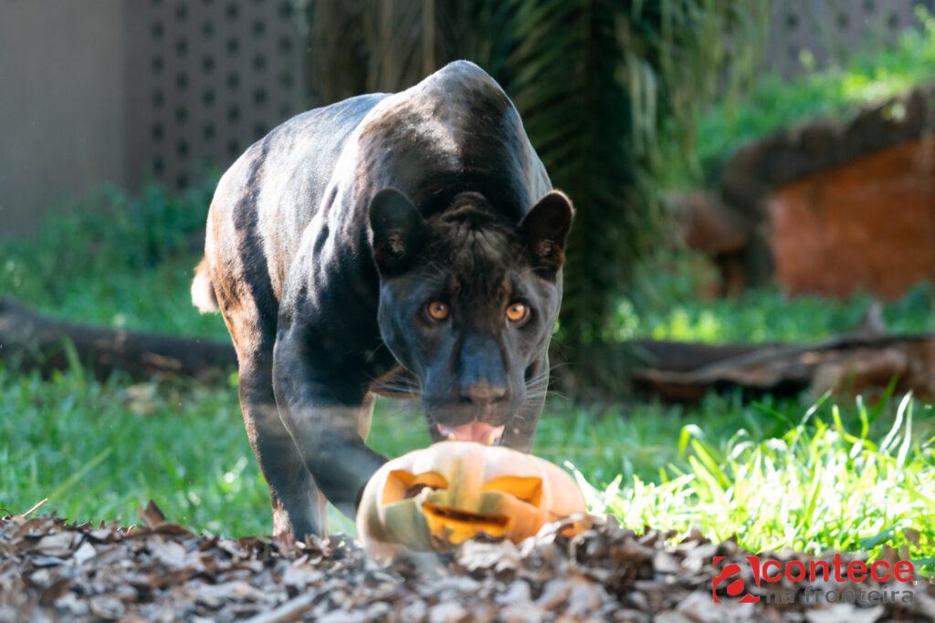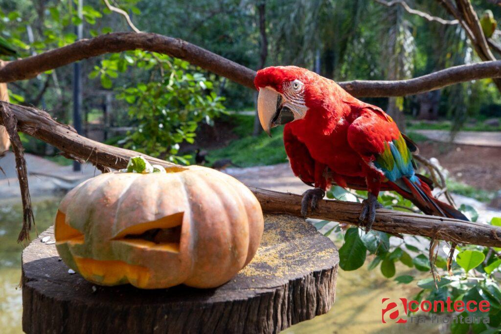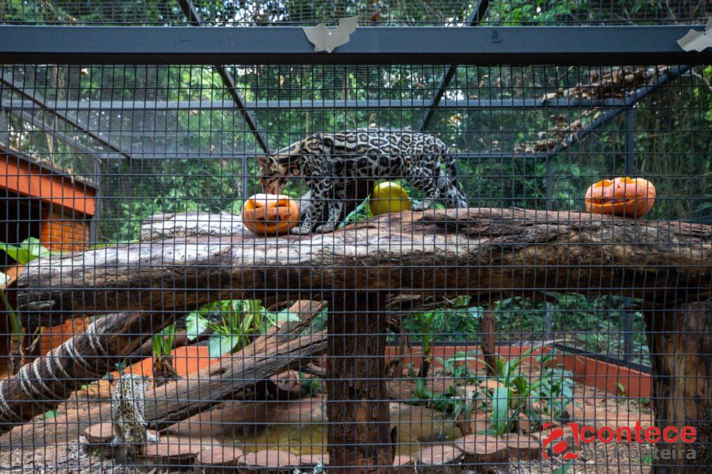 No domingo, os jabutis receberam abóboras de Halloween recheadas com flores de hibisco, a jaguatirica ganhou abóboras e um melão com “rostinho de fantasma”, que foi pendurado no recinto para incentivar o exercício, e os psitacídeos (papagaios, araras, etc.) tiveram a alimentação distribuída em móbiles de papelão com formato de morcego.