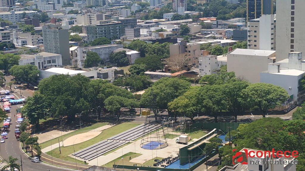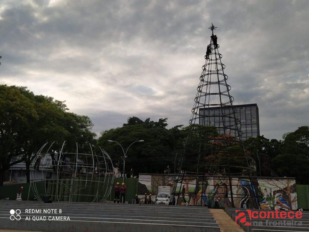 Quem passa pela Praça da Paz, na Avenida JK, em Foz do Iguaçu, acompanha uma movimentação diferente. É o vaivém do início da montagem do Natal de Águas e Luzes, evento que pretende transformar a fronteira do Brasil com o Paraguai e Argentina em destino internacional também da maior festa religiosa do planeta.