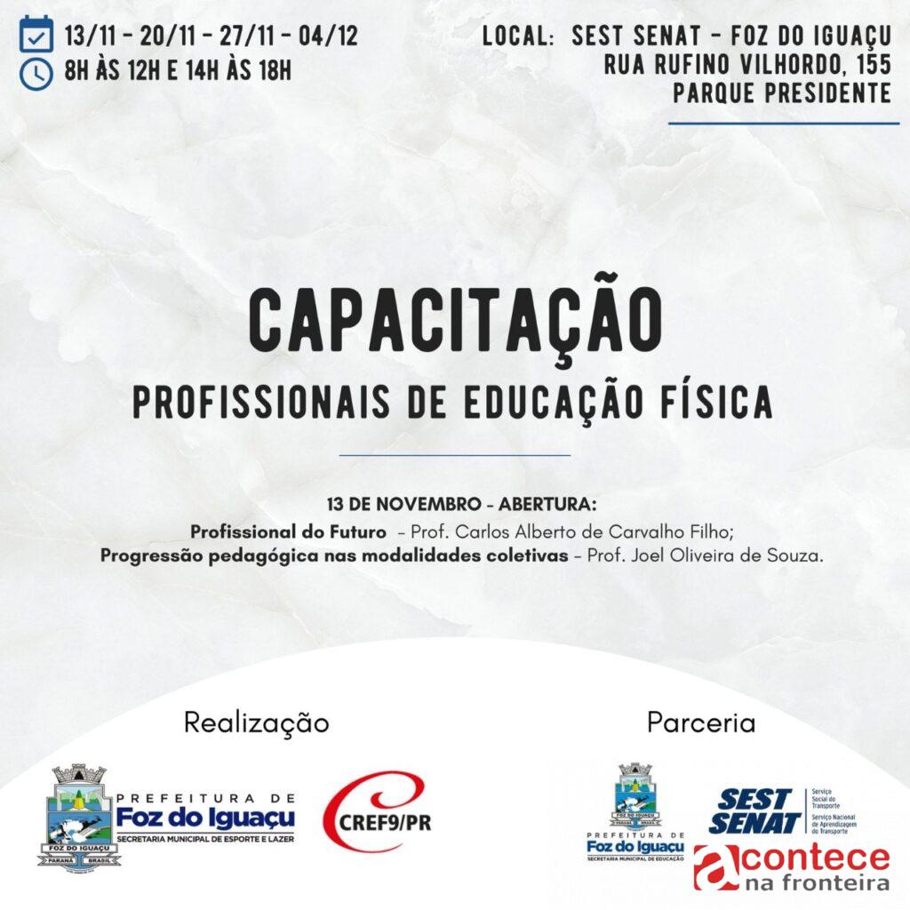 As secretarias de Esporte e Lazer e Educação de Foz do Iguaçu, em parceria com o Conselho Regional de Educação Física (CREF 09/PR), promovem a partir deste sábado, 13, uma formação continuada para os profissionais de Educação Física das pastas.