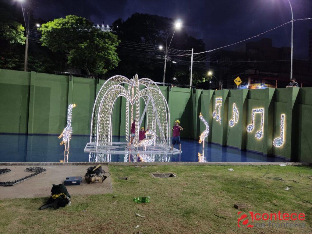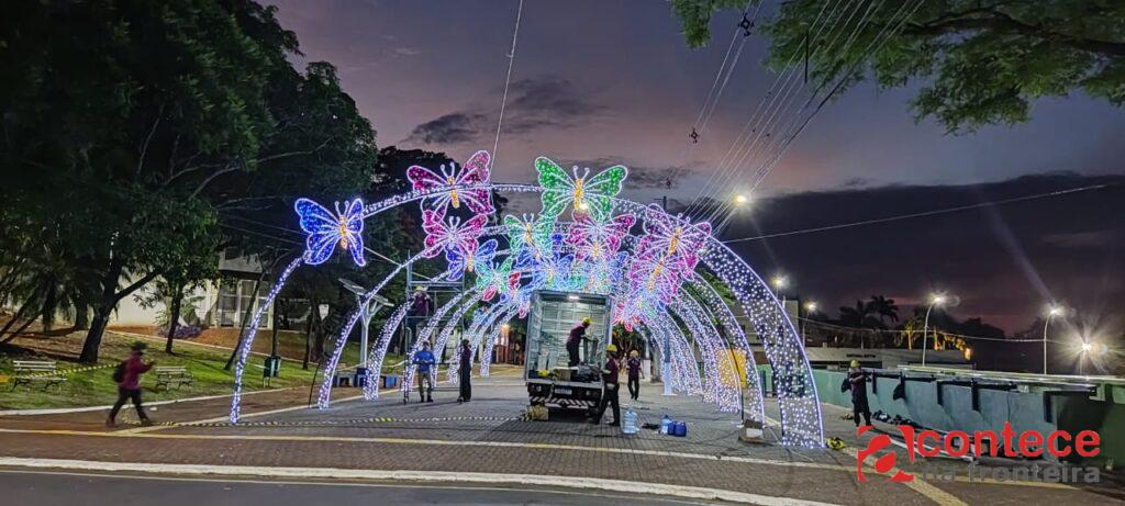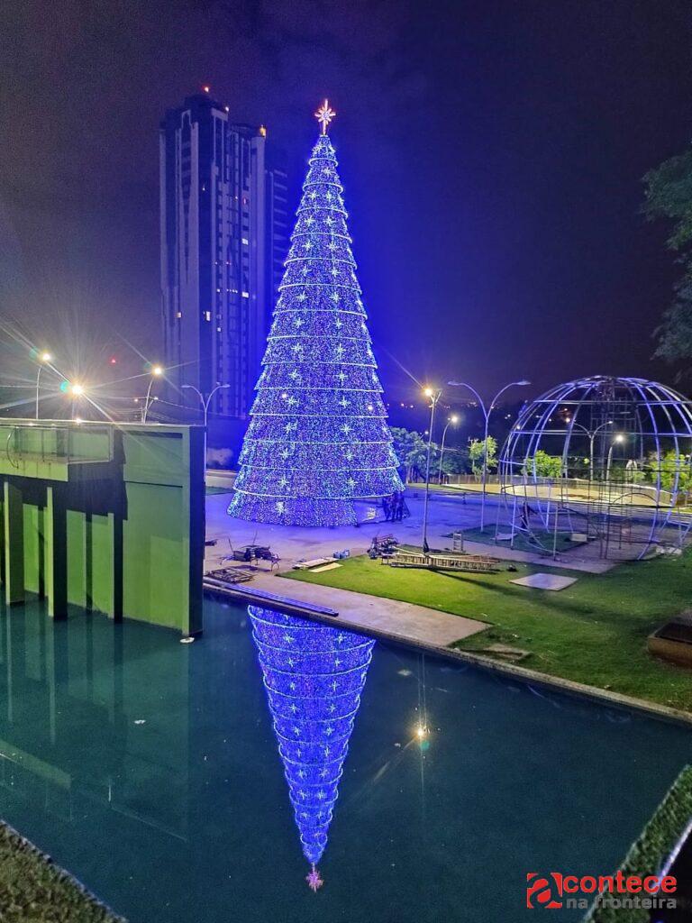 A movimentação na Praça da Paz, na Avenida JK, começou há mais de uma semana. A montagem do Natal de Águas e Luzes chama a atenção de quem passa pela região. O evento pretende transformar a fronteira do Brasil com o Paraguai e Argentina em destino internacional também da maior festa religiosa do planeta.