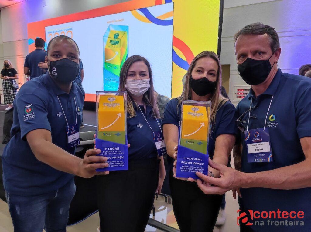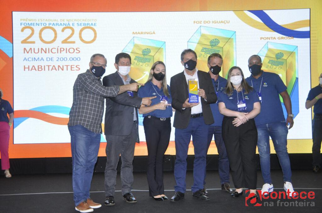 O Município de Foz do Iguaçu recebeu nesta terça-feira (23) o Prêmio Estadual de Microcrédito Fomento Paraná e Sebrae. O reconhecimento pelo trabalho realizado pela prefeitura em 2020, por meio do Banco do Empreendedor, foi entregue no Encontro Estadual de Agentes de Crédito, que acontece até esta quarta-feira (24) no Rafain Palace Hotel.