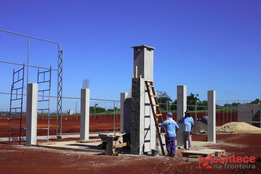 A drenagem e terraplanagem já foi concluída e, nesta semana, a empresa responsável pela execução do campo está trabalhando na construção dos vestiários, banheiros, churrasqueira e alambrados.