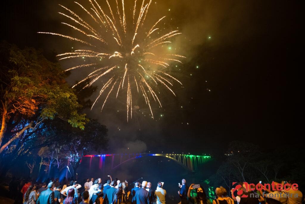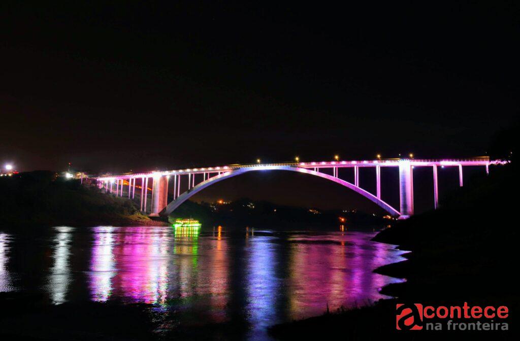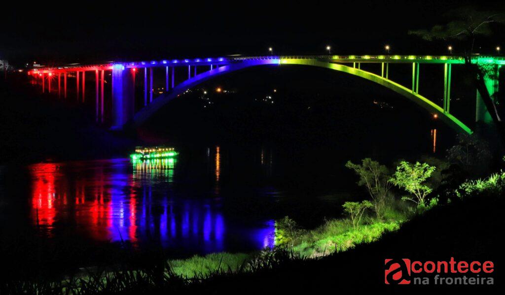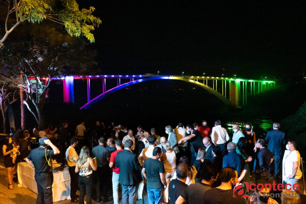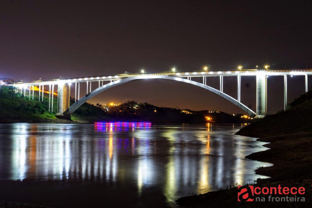 Solenidade oficial de lançamento da iluminação reuniu autoridades do Brasil e Paraguai. É a primeira vez que a estrutura arquitetônica da ponte, inaugurada em 1965, ganha iluminação especial.