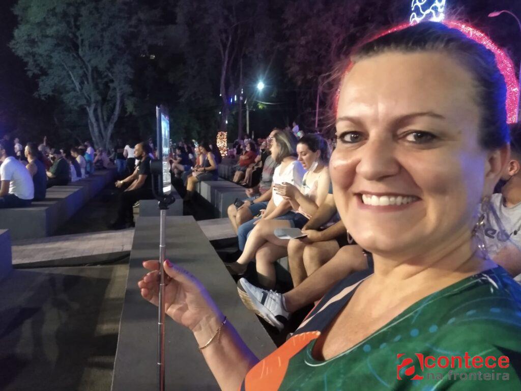 A pedagoga Denise Torres veio da Vila A assistir o espetáculo. “Estava bonito demais, foi perfeita a apresentação”. Denise, as duas filhas e o marido já são assíduos frequentadores do Natal de Águas e Luzes. “No Gramadão vamos quase todo dia, está uma delícia, mas, como somos evangélicos, hoje decidimos vir para o centro acompanhar os shows. Tem que prestigiar”.