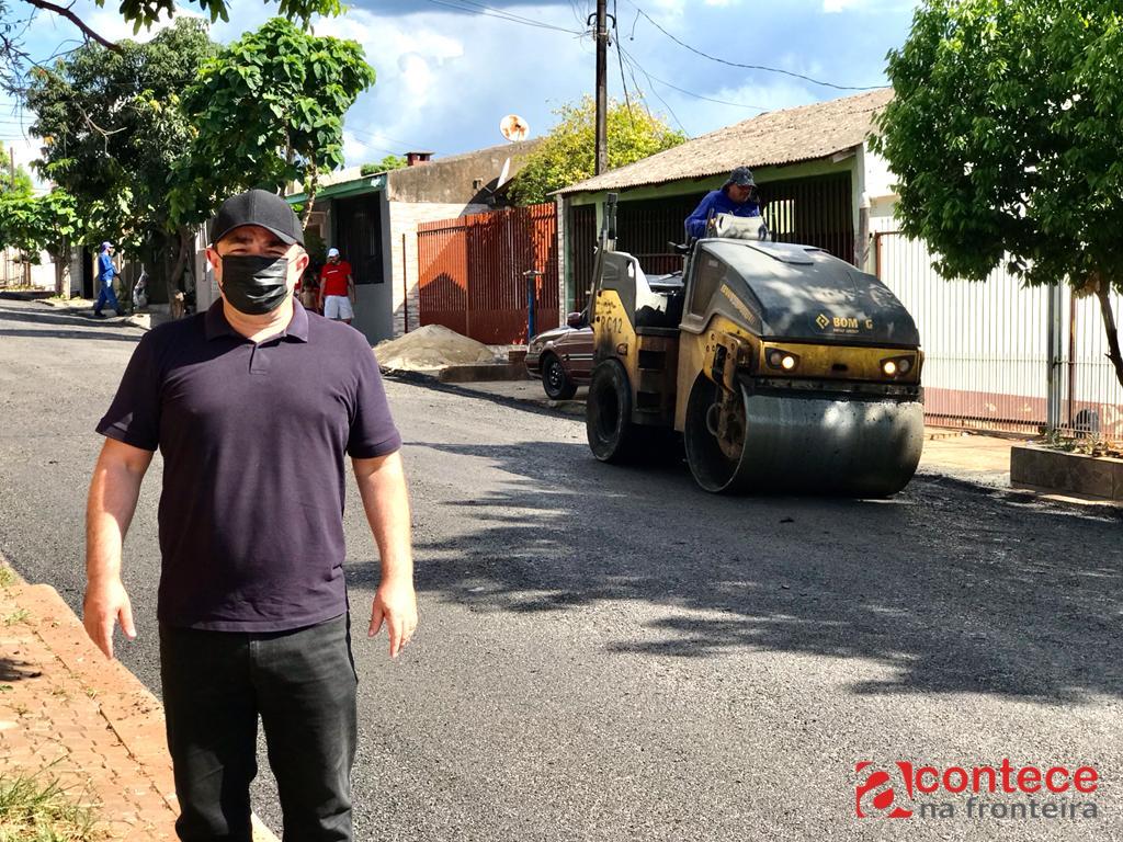 A pavimentação é executada por duas equipes da Usina Municipal de Asfalto – uma delas realiza a limpeza das vias e a segunda aplica a massa asfáltica. Trechos das ruas Dedé Nunes, Dr. Ney Wadisson dos Santos, Fadel Damen e Cláudio Coutinho já foram contemplados com parte dos serviços.