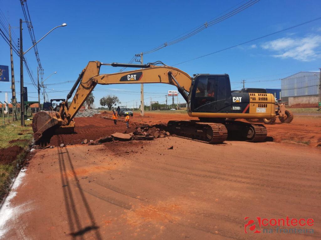 A empresa responsável pelas obras na Avenida Olímpio Rafagnin, marginal da BR-277, na entrada de Foz do Iguaçu, trabalha atualmente na recomposição de meio-fios, calçadas e ciclovias, após finalizar a instalação de redes de manilhas pluviais na região de Três Lagoas.