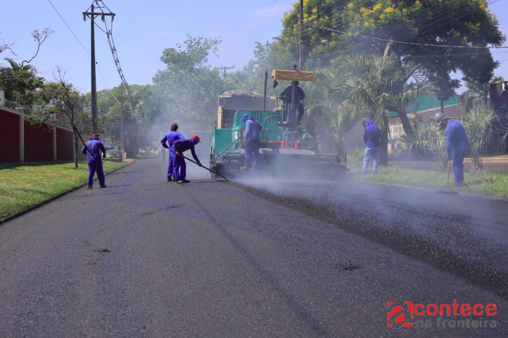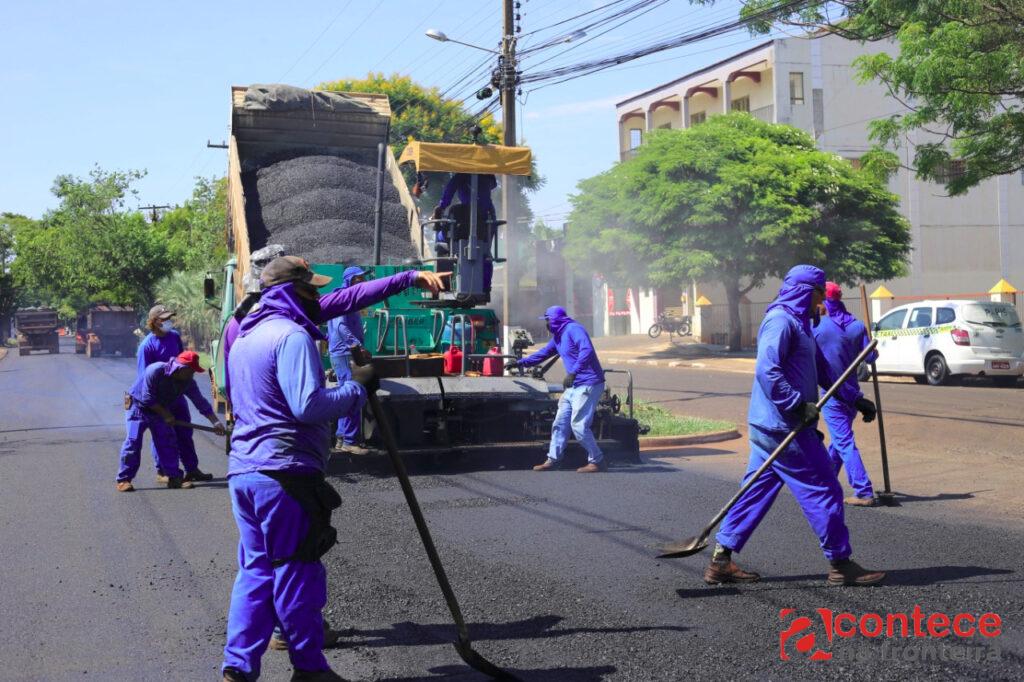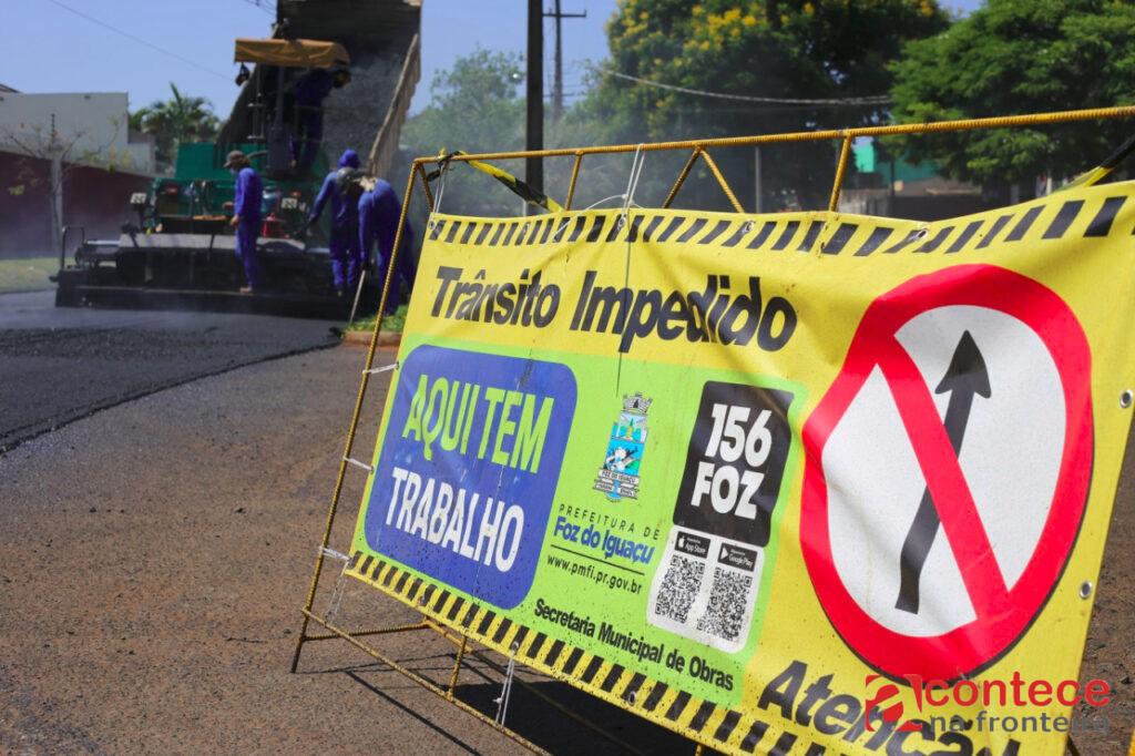 Trabalho é realizado por equipes da Usina de Asfalto da Prefeitura de Foz do Iguaçu