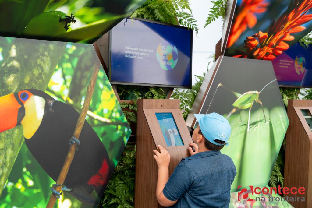 O visitante também é convidado a baixar um aplicativo que fornece informações diversas, notícias, roteiro da exposição, e uma seção de QR code que permite projetar, com o celular, animais da fauna da Mata Atlântica em áreas do pavilhão. Também é possível plantar uma árvore, contribuindo com a compensação de carbono de cada visitante.