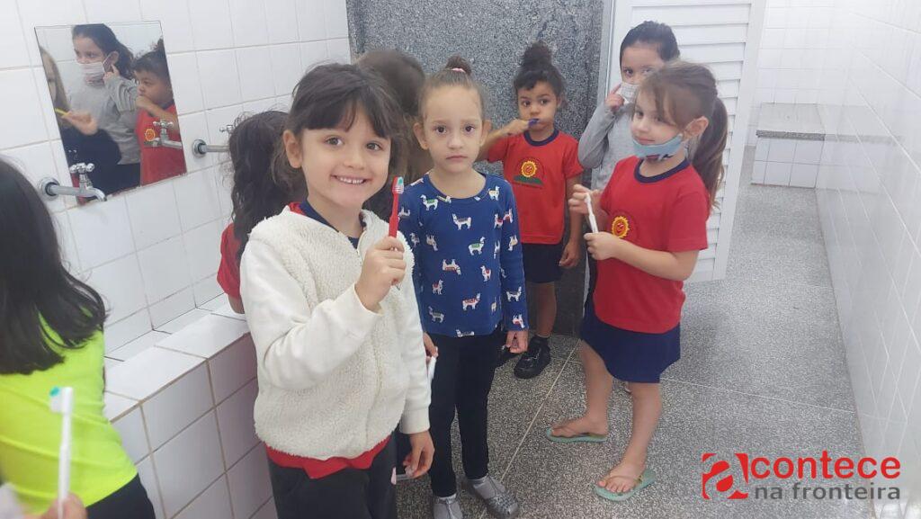 Para o pequeno Gabriel, de 4 anos, a escovação não é um problema. Na aula prática, ele quis escovar os dentes quatro vezes seguidas e disse aos amiguinhos que segue a rotina em casa. Manuela, de 3 anos, entendeu que precisa manter a higiene bucal sempre após as refeições. “E não pode comer muito doce, porque dá cárie”, alertou.