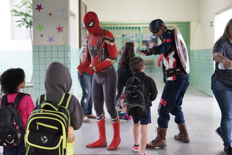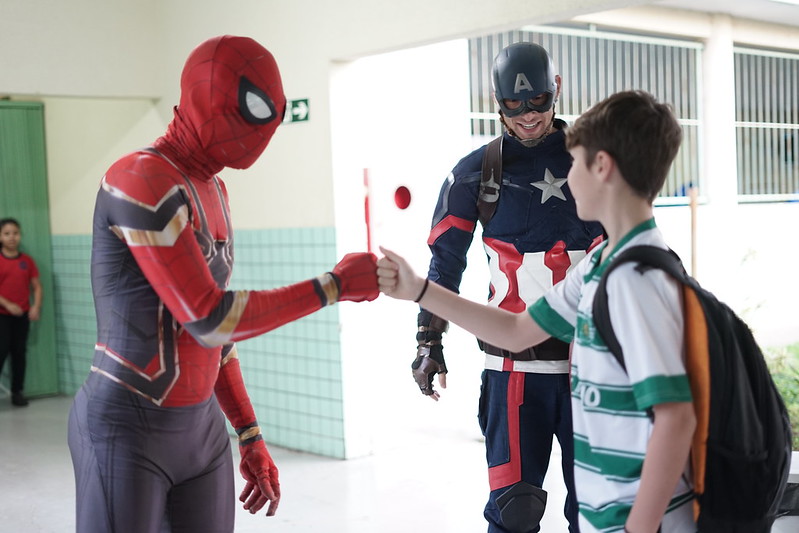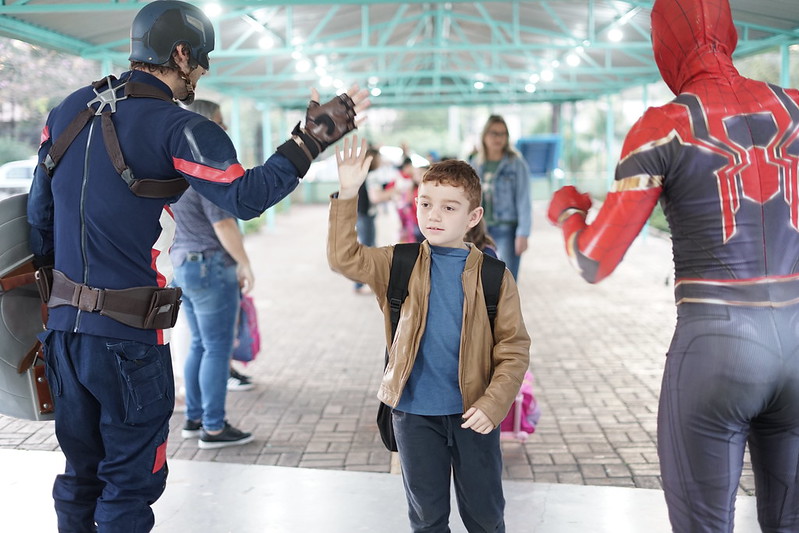 Na Escola Municipal Profª Josinete Holler, na Vila A, os estudantes foram recepcionados pela equipe pedagógica e super-heróis bastante conhecidos. O Homem Aranha e o Capitão América deram as boas-vindas e fizeram a festa com as crianças. “É um momento de alegria e descontração e eles gostam muito. Todos estavam ansiosos para a volta às aulas”, disse a diretora Alexandra Miranda.