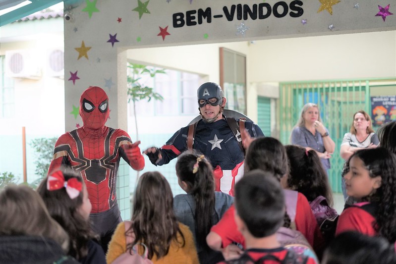 Na Escola Municipal Profª Josinete Holler, na Vila A, os estudantes foram recepcionados pela equipe pedagógica e super-heróis bastante conhecidos. O Homem Aranha e o Capitão América deram as boas-vindas e fizeram a festa com as crianças. “É um momento de alegria e descontração e eles gostam muito. Todos estavam ansiosos para a volta às aulas”, disse a diretora Alexandra Miranda.
