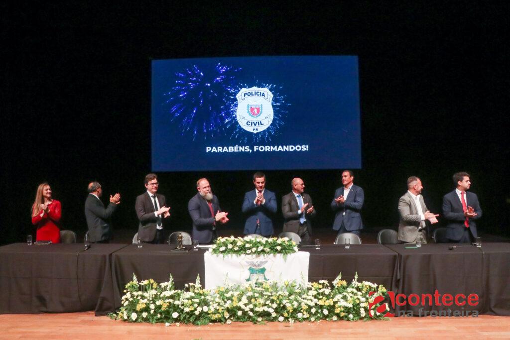 A Polícia Civil do Paraná (PCPR) formou 400 policiais civis nesta sexta-feira (23), no Teatro Guaíra, em Curitiba. A turma de formação faz parte de uma contratação histórica. Ao todo são 150 delegados, 200 investigadores, 50 papiloscopistas e 25 escrivães.