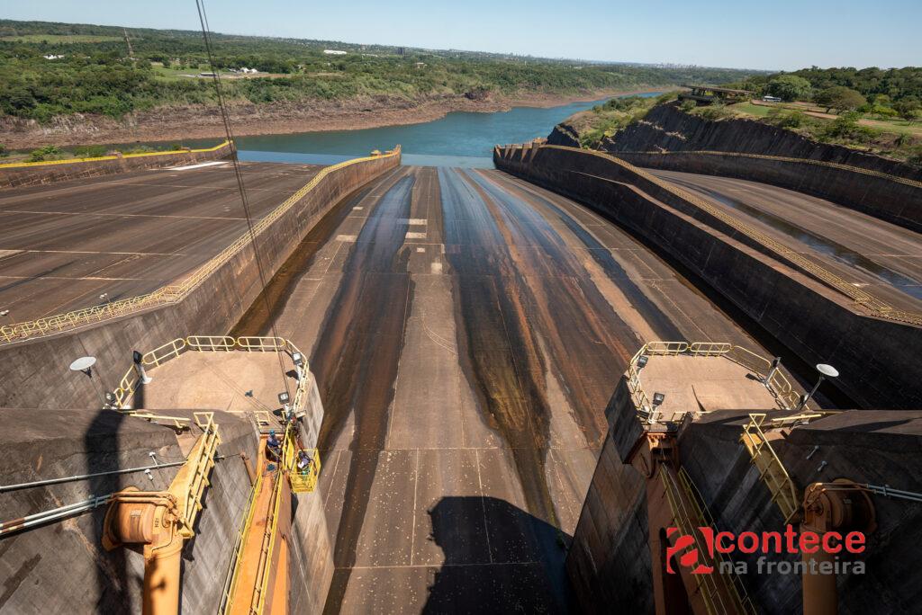Segundo o gerente do Departamento de Operação do Sistema (OPS.DT), Rodrigo Gonçalves Pimenta, essa situação é rara porque o reservatório de Itaipu opera em um modelo de fio d’água, ou seja, não possui grande capacidade de armazenamento de água. Todo o volume de água que chega até a barragem precisa seguir o fluxo do rio, seja gerando energia, por meio das unidades geradoras, ou escoado pelo vertedouro.