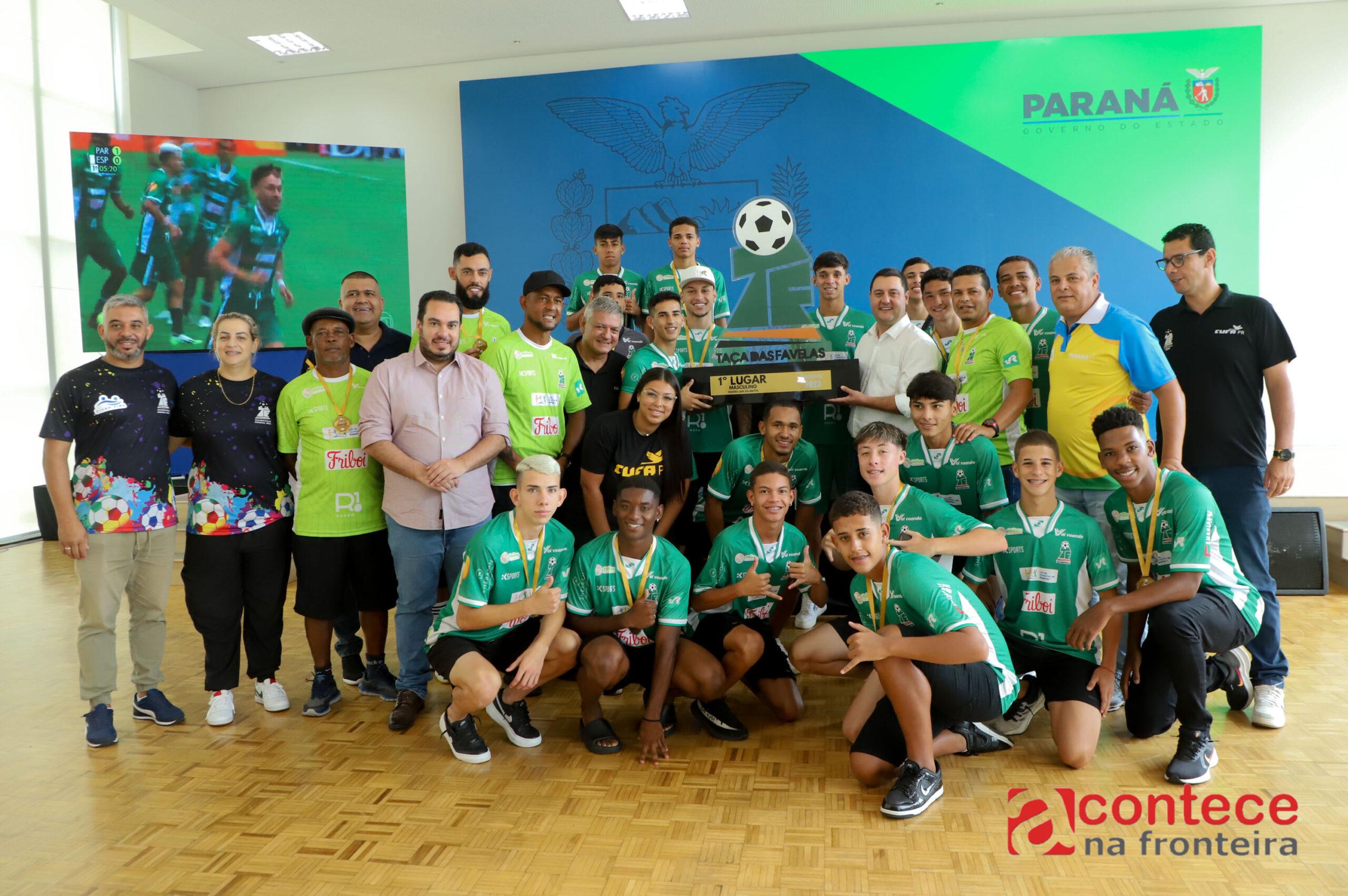 O governador Carlos Massa Ratinho Junior recebeu nesta quarta-feira (17) a seleção paranaense que foi campeã nacional de maneira inédita da Taça das Favelas na categoria masculina.