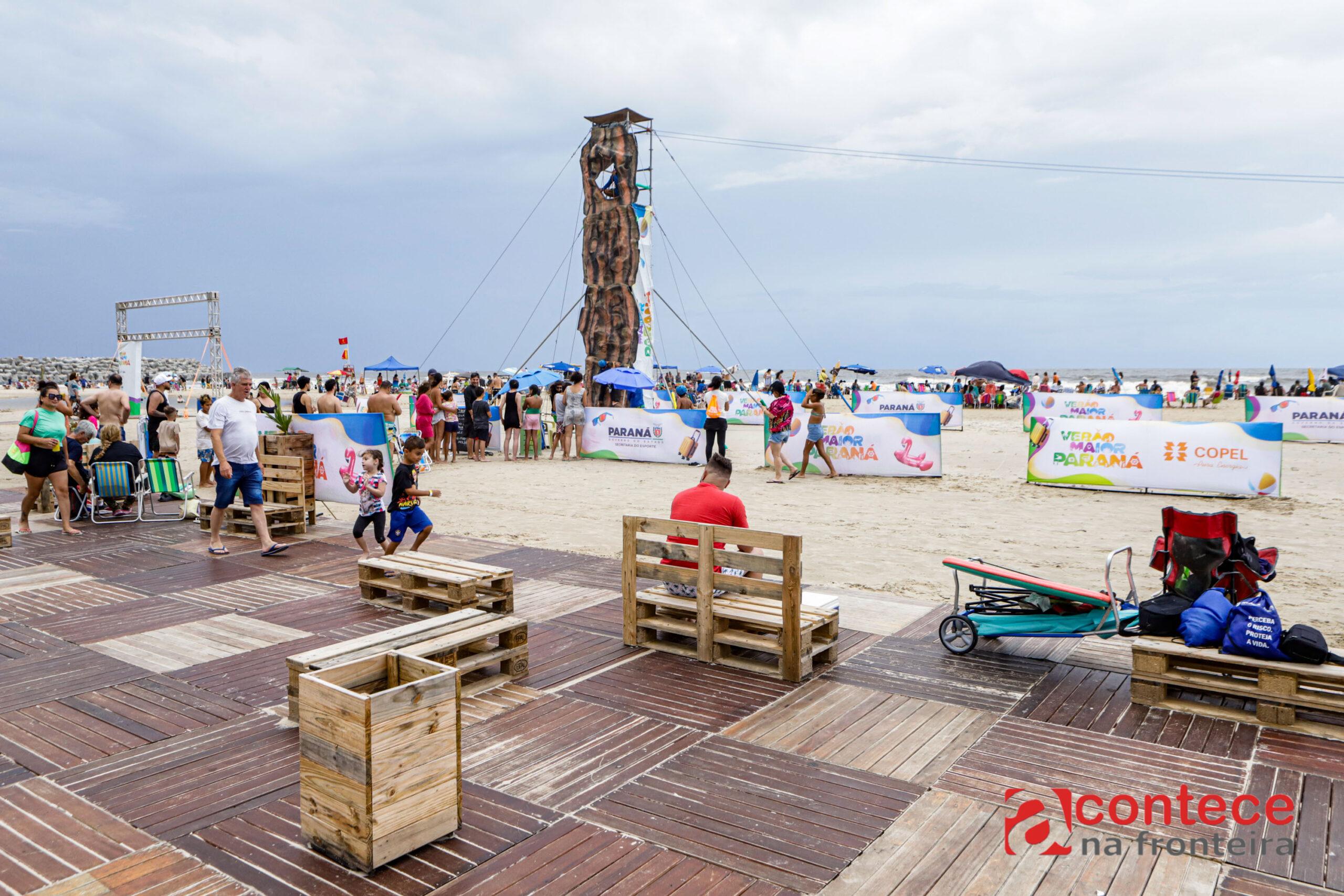 Depois de uma semana com chuvas intensas no Litoral do Paraná, o fim de semana (27 e 28) foi marcado pelo retorno do sol e de temperaturas elevadas. O calor motivou os veranistas a aproveitarem as praias, movimentando as arenas esportivas montadas pelo Governo do Paraná e impulsionando o comércio nas areias.