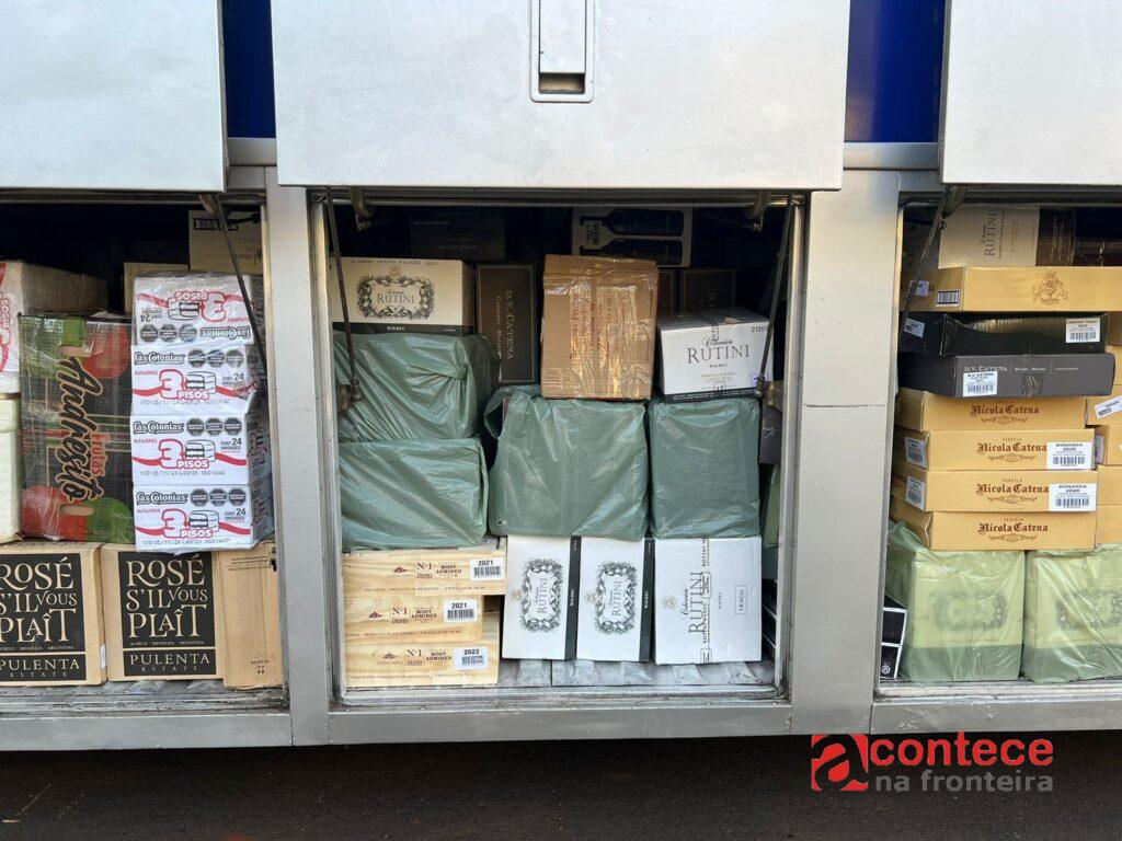 Já na segunda fiscalização, em operação conjunta com a Polícia Federal e a Polícia Rodoviária Federal, o segundo ônibus, com 22 passageiros, que também tinha como destino São Paulo, foi abordado no Posto da PRF em Santa Terezinha de Itaipu contendo mercadorias tais como vinhos, vestuários, eletrônicos e brinquedos. As mercadorias foram avaliadas em R$285 mil. Os motoristas e os passageiros foram liberados.
