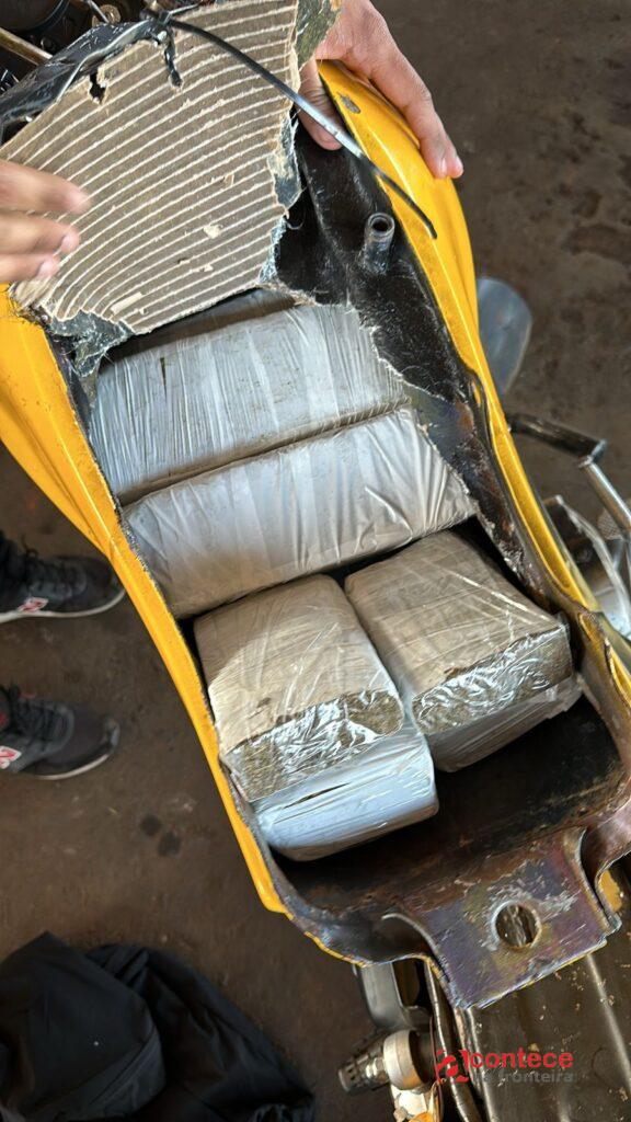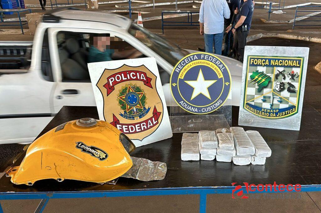 A ação teve início durante abordagem de rotina a uma moto, na qual os servidores detectaram carregamento suspeito em fundo falso no tanque de combustível do veículo. Ao procederem com inspeção mais detalhada, descobriu-se que aproximadamente 5,5kg de substâncias análogas à maconha estavam sendo transportadas.