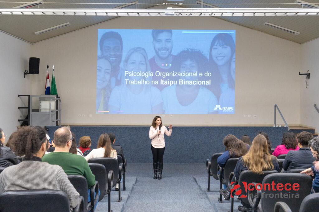 Nesta sexta-feira (23), cerca de 80 estudantes e profissionais de Psicologia das instituições Cesufoz, Uniamérica, Multiversa e União Dinâmica das Cataratas (UDC), e do Hospital Ministro Costa Cavalcanti (HMCC), estiveram na Itaipu Binacional para uma apresentação sobre Psicologia Organizacional. Eles foram recebidos pelos psicólogos Vanessa Lima, gerente da Divisão de Seleção e Acompanhamento de RH da Itaipu, Denise Perez e Paulo Abrantes.