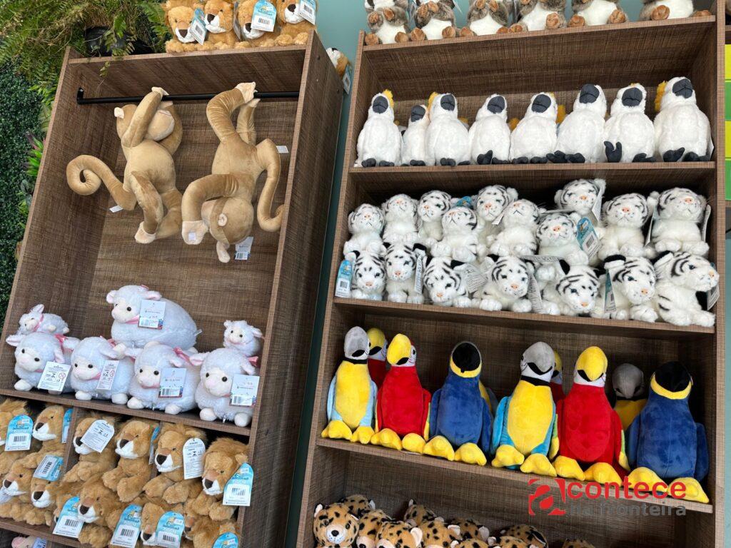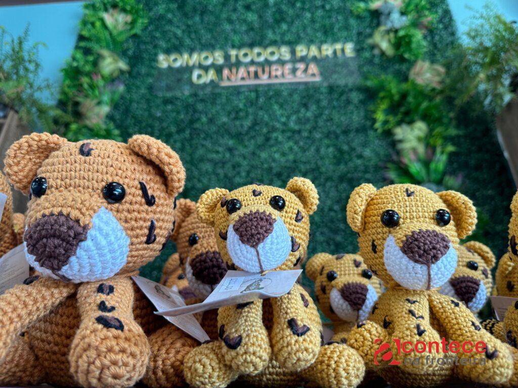 São araras, cavalos, ovelhas, corujas, falcões, urubus, capivaras, tamanduás, coelhos, macacos e guaxinins de pelúcia. Entre eles também estão mini onças de linha, chamadas de amigurumis, produzidas pelas “Crocheteiras do Iguaçu”, um projeto social cujo objetivo é empoderar mulheres do entorno do Parque Nacional do Iguaçu através da geração de renda alternativa, unindo o crochê com a conservação da onça-pintada.