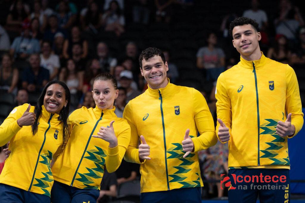 NATAÇÃO – Beatriz Borges Carneiro ganhou medalha na classe S14, que é voltada a atletas com deficiência intelectual, ao lado dos colegas Arthur Xavier, Ana Karoline Soares e Gabriel Bandeira. A paranaense foi a terceira a entrar na piscina e ajudou o Brasil a marcar o tempo de 3 minutos, 47 segundos e 49 centésimos. A marca é o novo recorde das Américas na categoria.