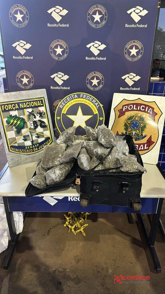 Na sexta-feira, dia 21, foram apreendidos 13,16 kg da droga com o passageiro de um mototáxi, que tentava transportar a substância escondida em uma mala de viagem. O indivíduo tentou fugir, mas foi contido, preso em flagrante e encaminhado à Delegacia da Polícia Federal.