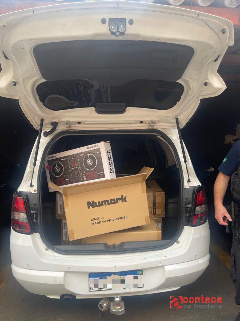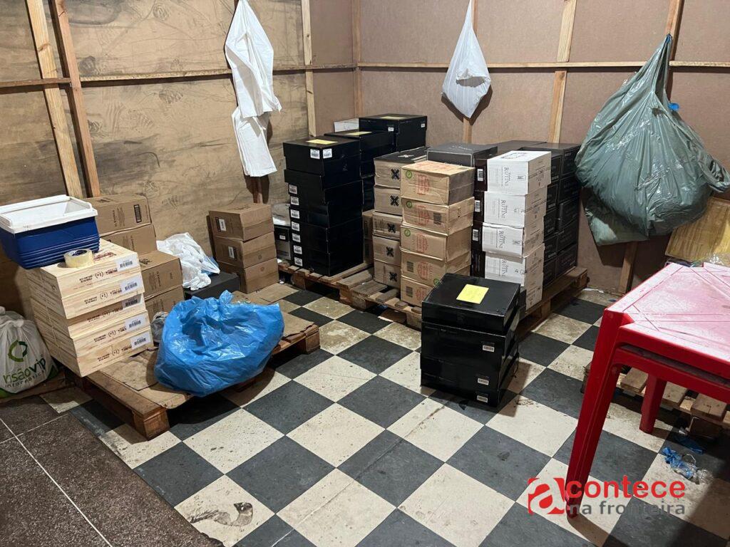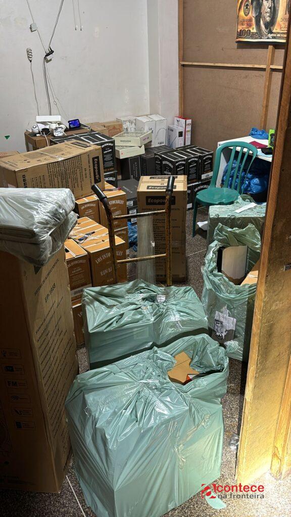 Durante a operação, as equipes flagraram três indivíduos que transferiam várias caixas de mercadorias importadas de um depósito para o bagageiro de três veículos estacionados no local.