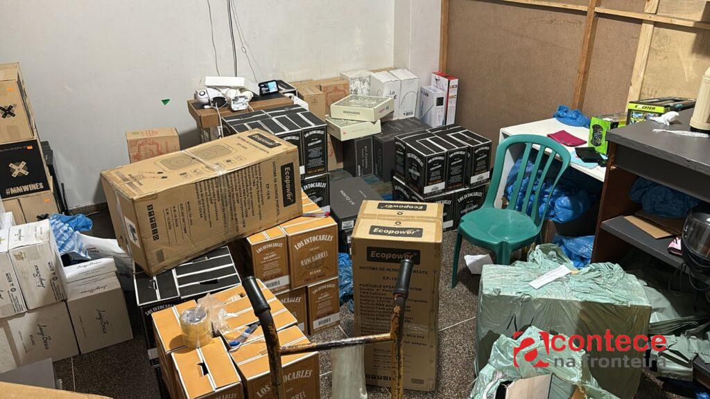 Dois veículos estavam carregados com mesas de som e caixas de som, outro estava carregado com 557 smartphones. No depósito foram encontradas cerca de 2000 garrafas de vinho. Todas as mercadorias foram estimadas em R$ 650 mil.