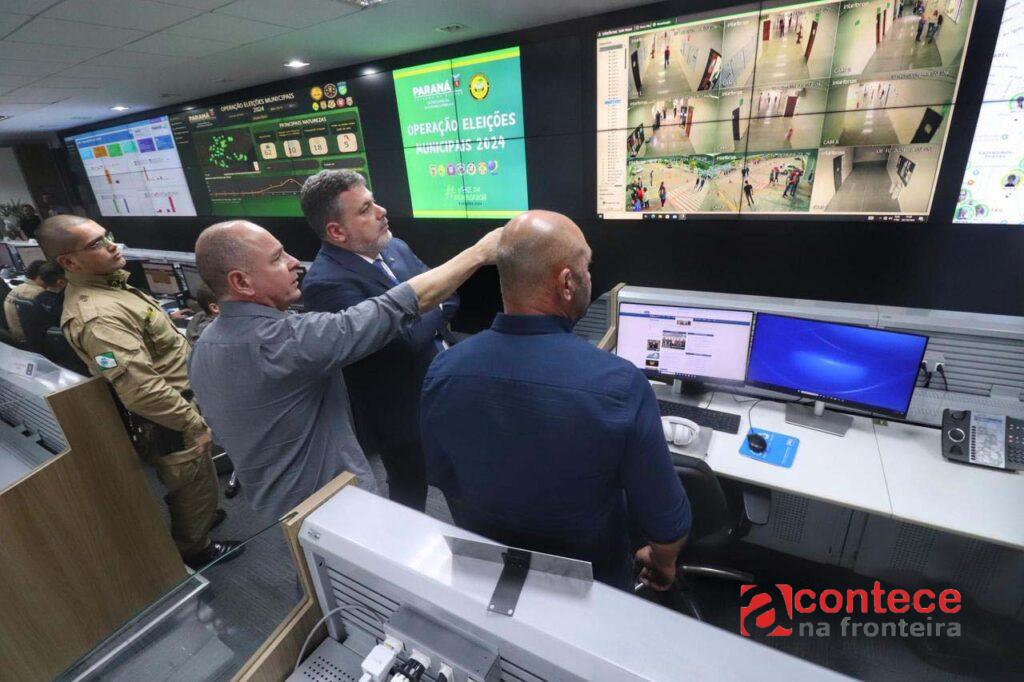 OPERAÇÃO ELEIÇÕES – A Operação Eleições 2024 teve como objetivo garantir a segurança dos paranaenses durante o pleito eleitoral. Além dos representantes institucionais das forças vinculadas a Sesp (polícias Militar, Civil, Científica, Penal e Corpo de Bombeiros), também atuam representantes do Tribunal Superior Eleitoral (TSE), da Polícia Federal (PF), da Polícia Rodoviária Federal (PRF), do Ministério da Defesa, da Agência Brasileira de Inteligência (Abin) e Secretaria Nacional de Proteção e Defesa Civil (Sedec).