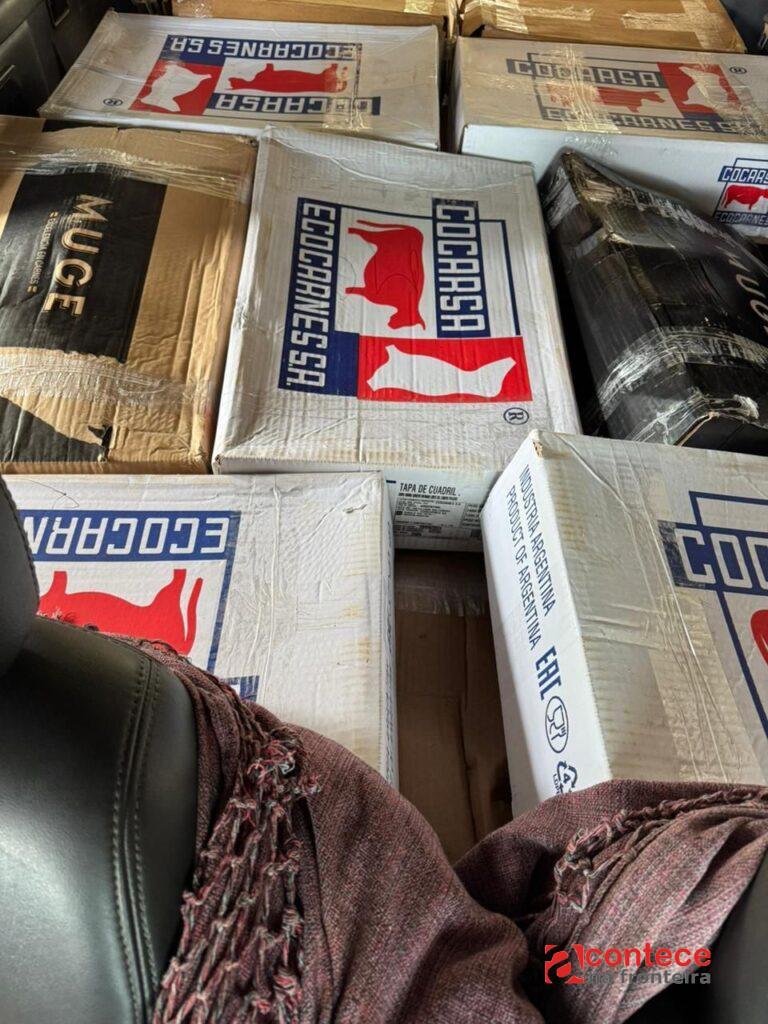 Foram encontrados 106 kg de camarão, 130 kg de coxão duro e 205 kg de picanha. No total, a apreensão alcançou 441 kg de produtos, avaliados em R$ 40 mil. Essa carga foi caracterizada como descaminho e, por isso, apreendida juntamente com o veículo.