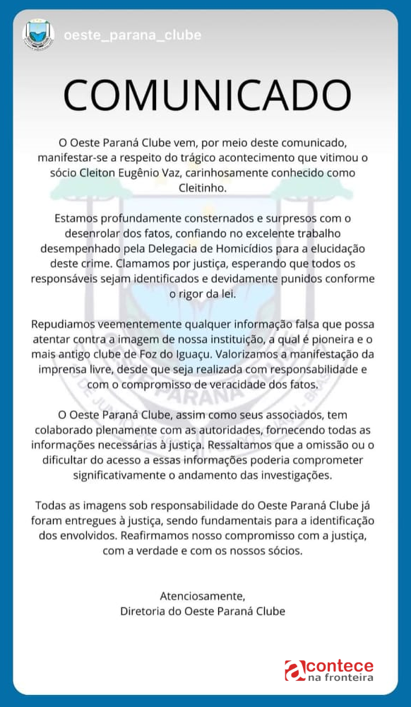 Em coletiva de imprensa, a delegada Iane Cardoso que cuida do caso onde prenderam um homem de 40 anos, apontado como suspeito do brutal assassinato de Cleiton Eugênio da Silva. O corpo da vítima, desaparecido desde 9/10, foi encontrado em estado de decomposição no Lago de Itaipu (margem paraguaia) no dia 14, mutilado e com uma pedra amarrada à cintura.
