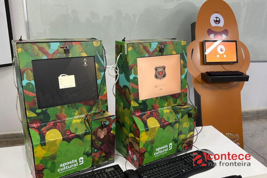 Estas máquinas, complementa o professor Wesley Attrot (Departamento de Computação), receberam versões de 30 livros de domínio público indicados pelo setor de pedagogia do Deppen. Os totens deverão facilitar o acesso à literatura tendo em vista que esta é uma das atividades educacionais consideradas para o cálculo de remição da pena.