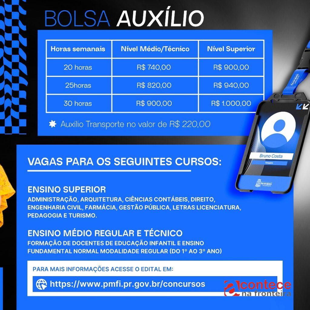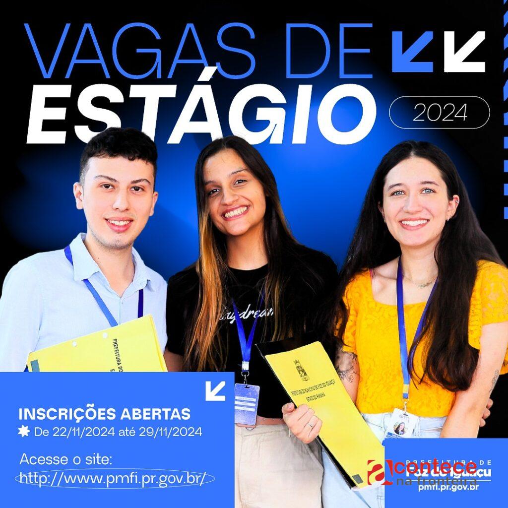 Começa nesta sexta-feira (22) e segue até o dia 29 de novembro o período de inscrição para o Processo Seletivo de Estágio da Prefeitura de Foz do Iguaçu. Podem participar alunos que estejam devidamente matriculados e frequentando os cursos de Formação de Docentes de Educação Infantil e Ensino Fundamental Normal Modalidade Regular (Magistério) e de dez cursos do Ensino Superior, na modalidade presencial ou EAD, em instituições ou polos sediados em Foz do Iguaçu. As inscrições devem ser feitas pelo site: https://www5.pmfi.pr.gov.br/concursos.