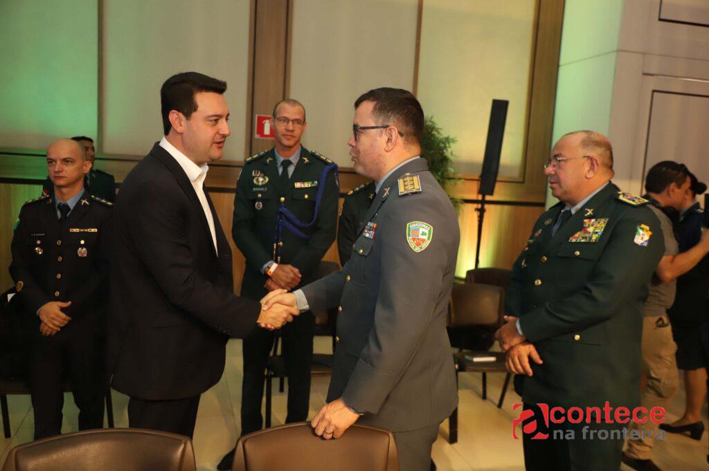 MEDALHA – O governador também recebeu a Medalha de Mérito do Comando-Geral, uma condecoração concedida pelo comandante-geral da Polícia Militar do Paraná a integrantes da corporação e a personalidades civis que demonstram dedicação, competência e contribuição significativa ao cumprimento da missão institucional. Também foram entregues medalhas para os comandantes-gerais dos 26 estados e do Distrito Federal.