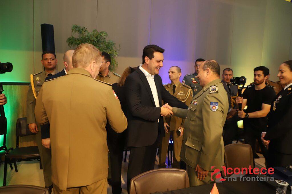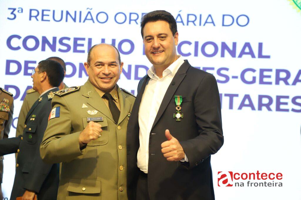 MEDALHA – O governador também recebeu a Medalha de Mérito do Comando-Geral, uma condecoração concedida pelo comandante-geral da Polícia Militar do Paraná a integrantes da corporação e a personalidades civis que demonstram dedicação, competência e contribuição significativa ao cumprimento da missão institucional. Também foram entregues medalhas para os comandantes-gerais dos 26 estados e do Distrito Federal.