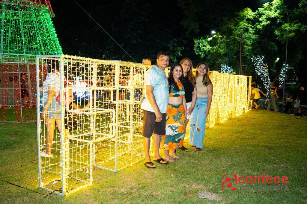 O Theo Gonçalves estava com o pai, Harison Gonçalves. Eles moram na Vila A, e estavam passeando próximo ao centro quando viram a decoração, acharam bonita e resolveram chegar. “Está sendo muito legal, estamos nos divertindo bastante, a iluminação está muito bonita. Tudo está muito lindo.” Explica.