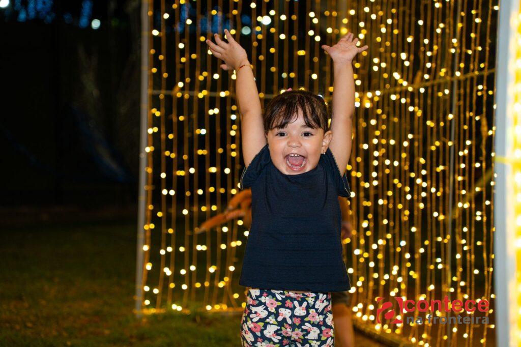 Se os adultos já estavam gostando, as crianças estavam maravilhadas. Após a apresentação do espetáculo e a abertura da iluminação de Natal, a Ana Luiza da Silva, filha da ThayaneKetlen Rodrigues da Silva Melo, brincou por entre os enfeites com toda a magia e imaginação que a infância permite em um cenário que vai ficar para sempre na memória. “Está sendo uma noite maravilhosa, a gente soube que ia ter o show, mas não sabia que além do espetáculo iriam acender as luzes também então foi uma surpresa. Viemos do Parque Presidente para acompanhar e está tudo muito lindo.” Comenta.