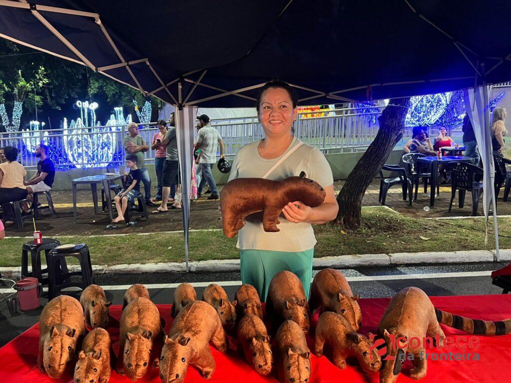 A Feira de Natal é realizada desde 2017, neste ano ela estará montada até o dia 05 de janeiro. A feirante Zenaide Vaz fabrica capivaras em casa e as vende em alguns atrativos turísticos de Foz do Iguaçu. Esta é a segunda vez que ela participa da Feira de Natal e está otimista para vender muitas capivarinhas para quem visitar a feira e com isso conseguir uma renda extra. “Tem bastante gente, bastante público e as pessoas estão felizes e isso nos ajuda a vender mais. Hoje eu consegui vender bem e espero que siga assim nos outros dias também.” Comemora e finaliza.